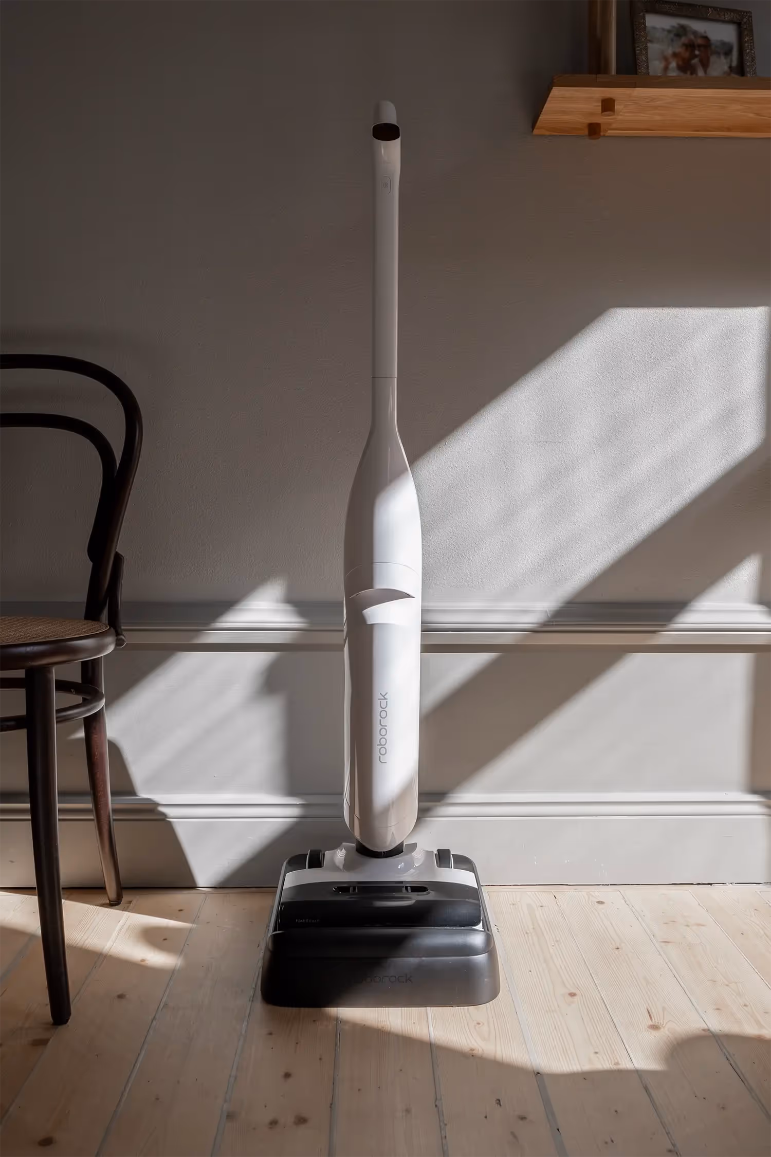 Roborock rekommenderar att batteriet tas ur när skaftdammsugaren står i stället, eftersom det annars kan påverka laddningen. Byggkvaliteten känns solid, och den tunna designen gör det enkelt att komma åt under möbler. Tack vare den automatiska självrengöringen och de separata vattentankarna kräver maskinen minimalt underhåll.