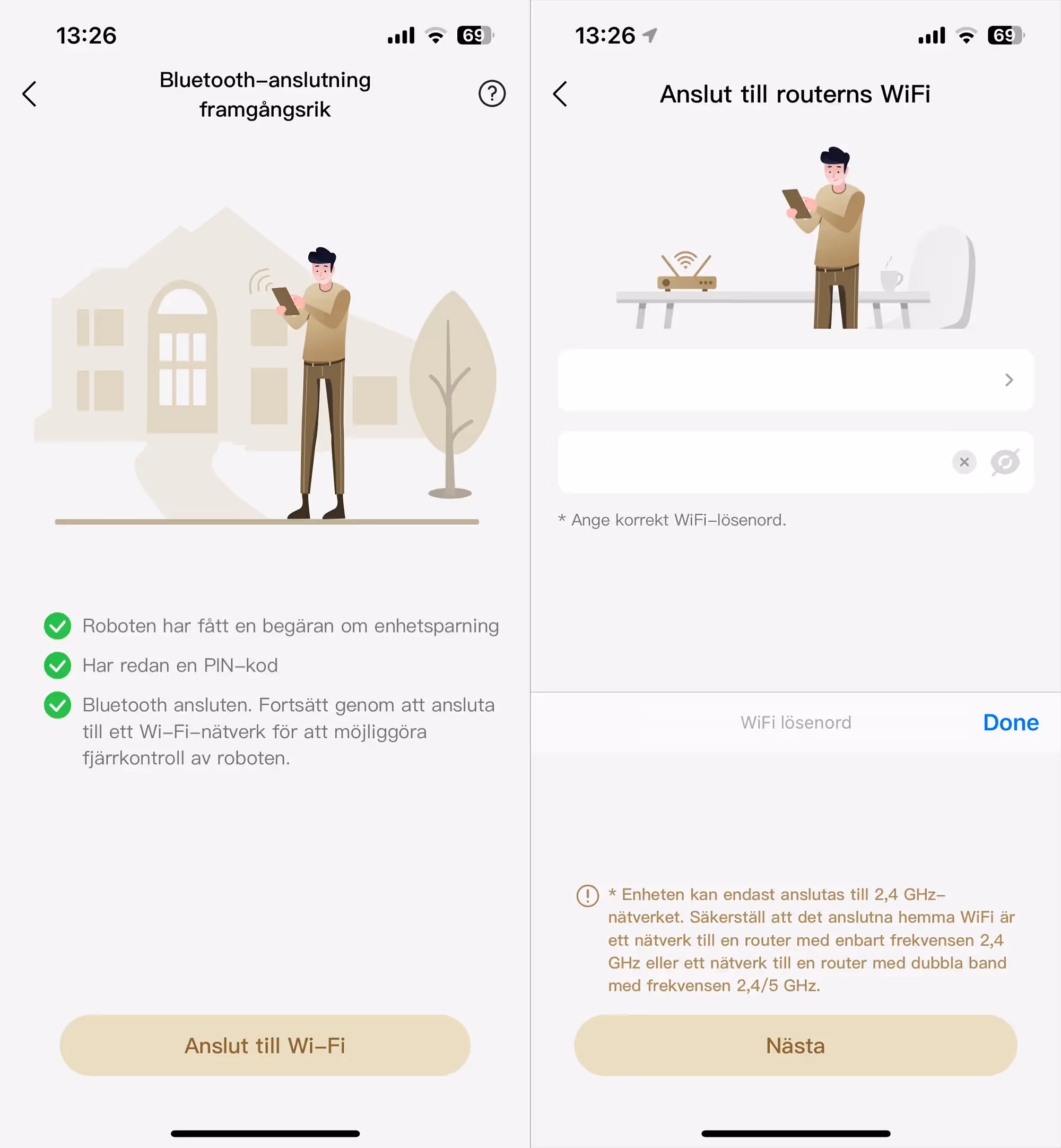 Dockningsstationen behöver tillgång till WiFi, så placera den så nära din router eller accesspunkt som du kan så du inte riskerar att tappa signalen. Roboten i sig behöver inte ha tillgång till WiFi under klippningen, det är alltså bara själva dockningsstationen som behöver det. Skulle du behöva placera din dockningsstation på en plats utan WiFi så finns det möjlighet att köpa till en GSM-modul för ca 2 800kr. Till modulen ingår tre år gratis uppkoppling som aktiveras vid första installationen, då kan du även se robotens position på Google Maps.