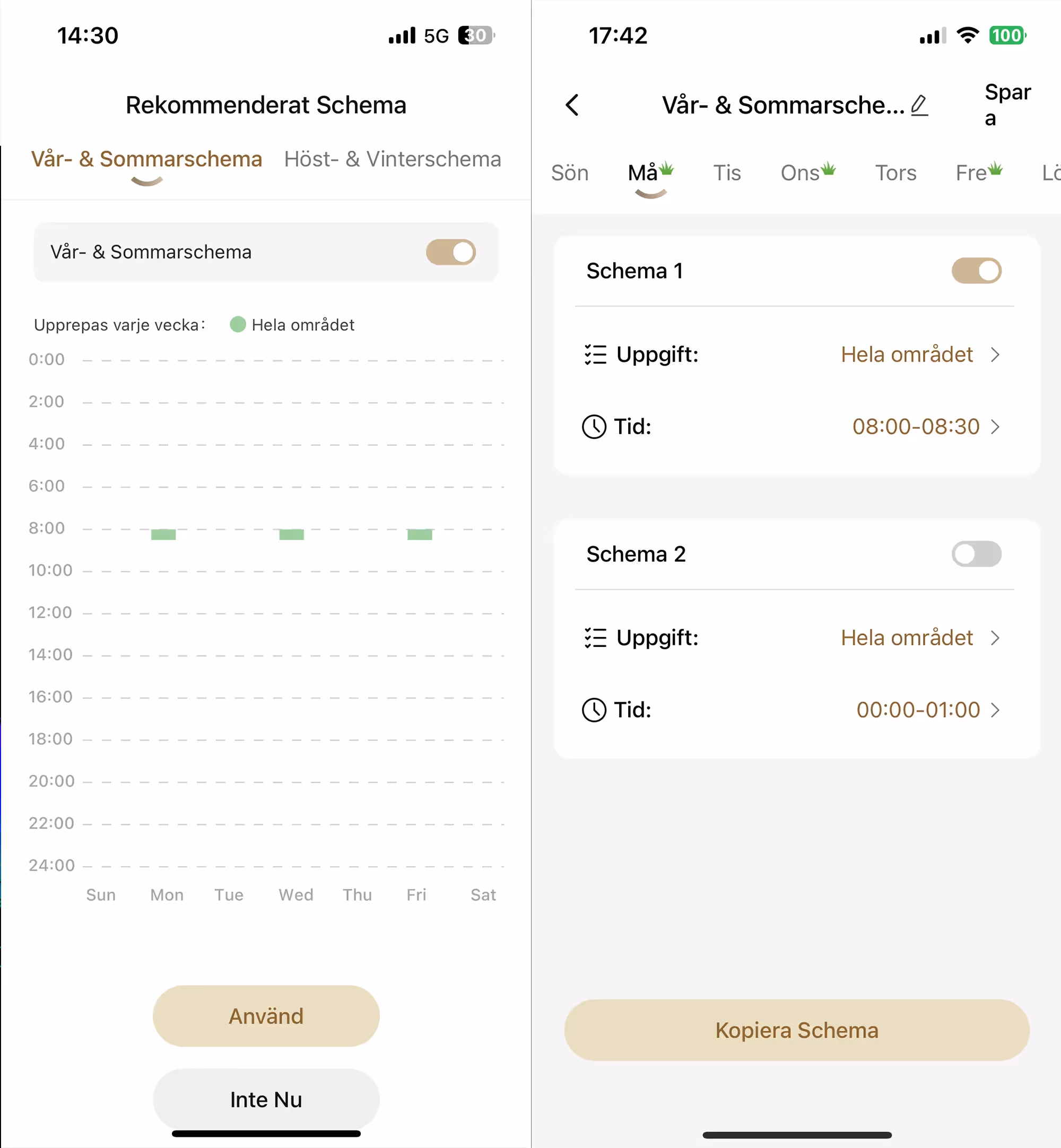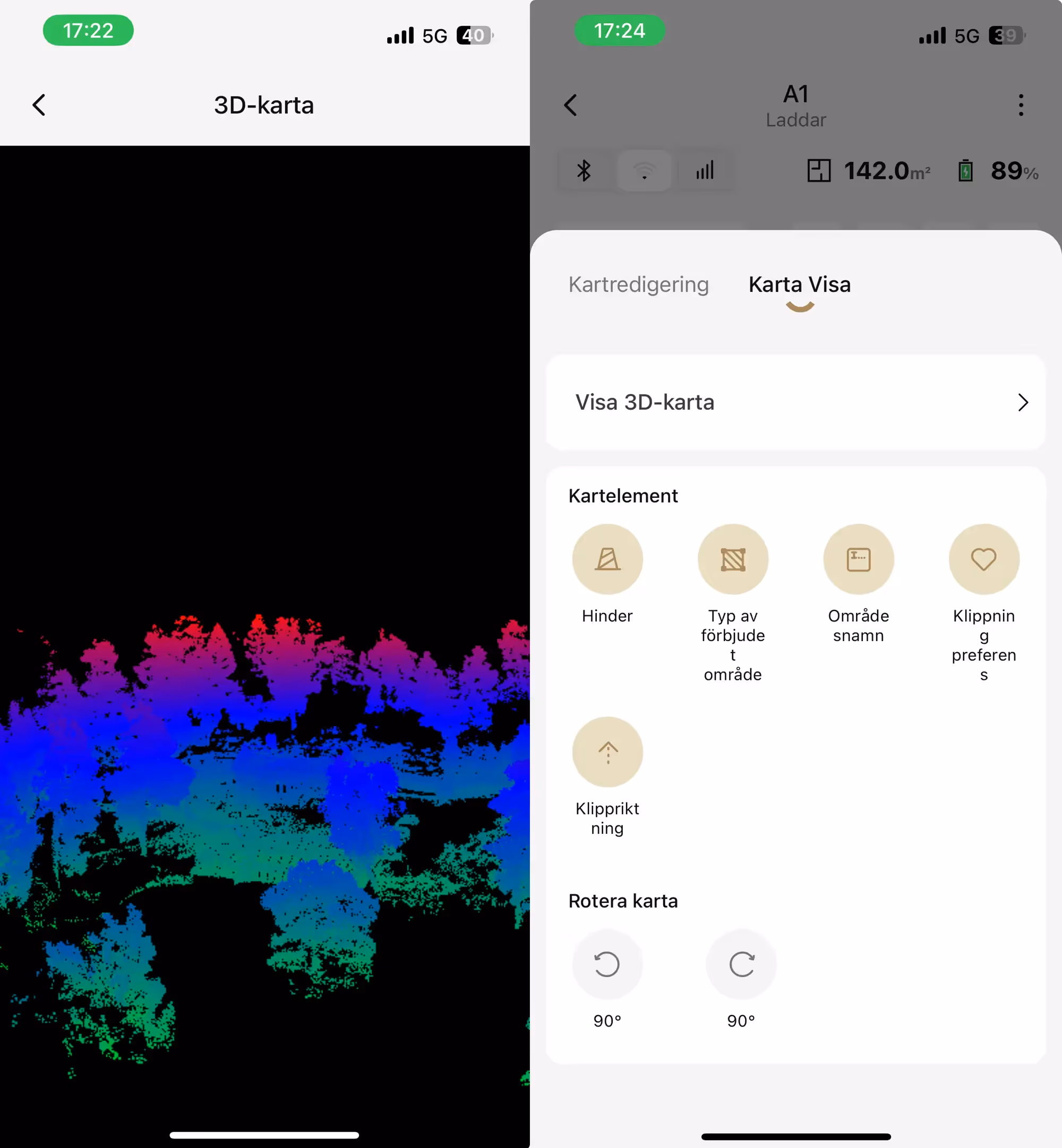 Dreame har ju hållt på med det här ett tag och det märks. Snygg och användarvänlig app. Det hade varit trevligt med lite fler funktioner dock, här finns det mycket utvecklingspotential för Dreame. Att t.ex. kunna välja olika klippmönster, klippriktning, klipphöjder och aktivering av effektivitetsläget för olika zoner. Vi har t.ex fler zoner där klippriktningen skulle behöva vara olika eftersom zonerna är ganska smala och roboten behöver därför vända onödigt många gånger vilket tar tid och skapar fula klippmönster. Lite mer likt hur inställningarna ser ut för deras robotdammsugare. Som vanligt med appar som inte är utvecklade i sverige så hittar vi en del stavfel och liknande.