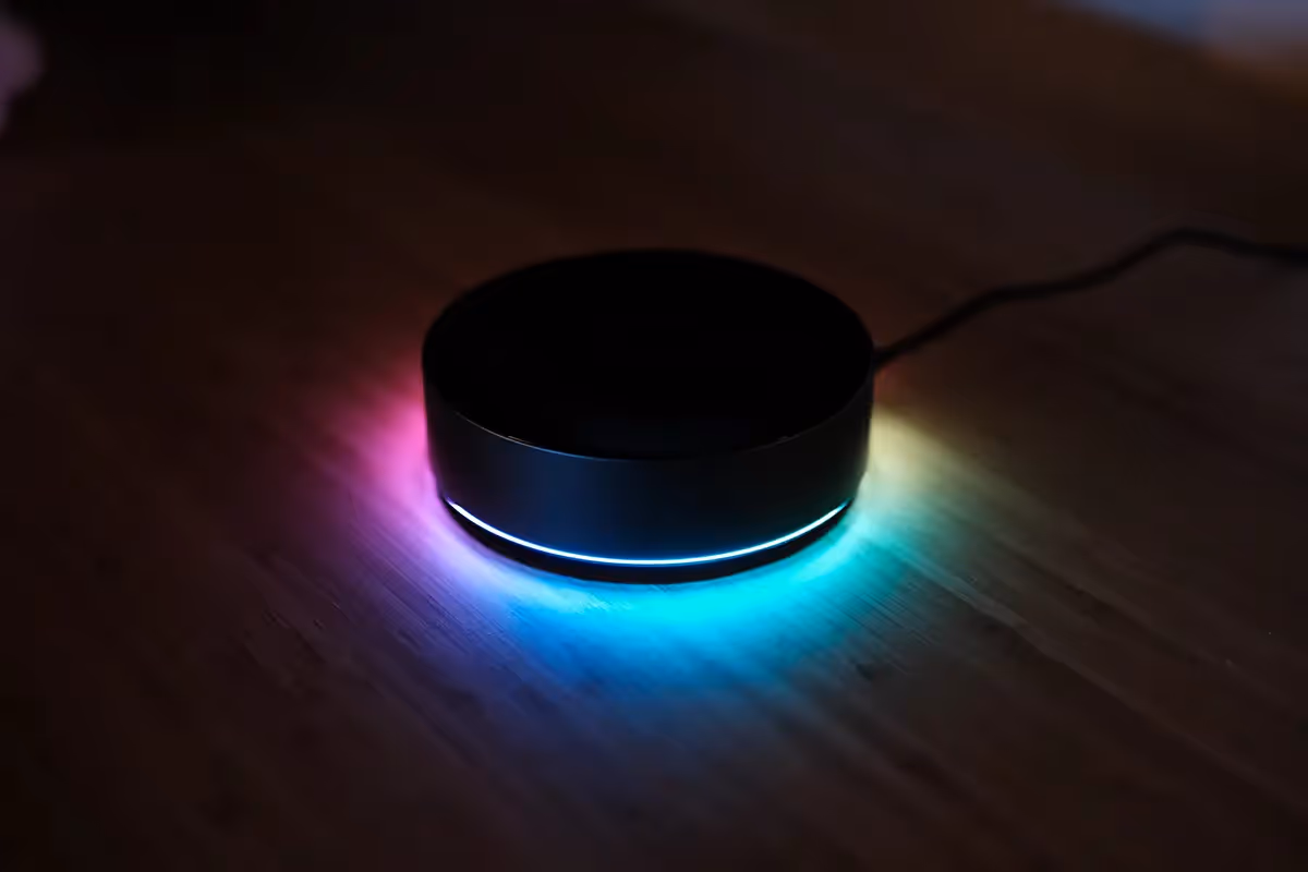 Homey Pro har till skillnad från Homey Bridge en svart blänkande utsida runtom och är något högre. Enheten har en kompakt och modern estetik som smälter in snyggt i ett modernt hem. Den cirkulära LED-ringen som omger enhetens botten ger inte bara en estetisk touch utan fungerar även som en användbar indikator för enhetens status. Homey Pro är tydligt konstruerad med omsorg och uppmärksamhet till detaljer, vilket ger en känsla av kvalitet samtidigt som den kan upplevas något plastig och skör. Det är dock en väldigt välkommen uppdatering i jämförelse med den tidigare designen som hade formen av en boll.