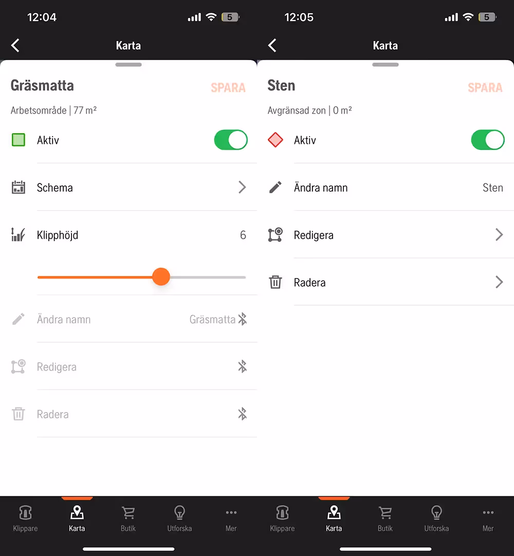 När kartan över trädgården är skapad kan du rita upp områden i trädgården där du inte vill att din robotgräsklippare skall gå. Det kan exempelvis vara en större sten mitt i trädgården eller en damm. Buskar, stora utemöbler etc behöver du inte markera i appen, det är sådant som roboten kommer upptäcka och undvika tack vare radarn.