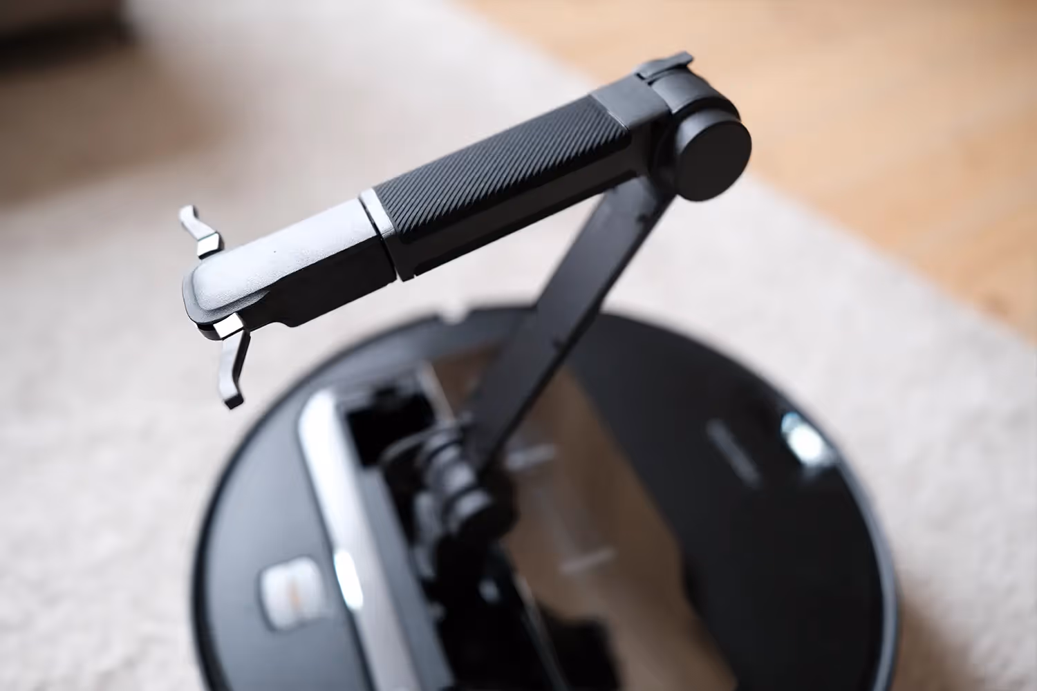 I våra tester på hårda golv lämnades små mängder grus eller smulor kvar i ytterkanterna av rummen, särskilt runt hinder som möbelben. Under soffbordet städar den fint, men lyckas inte riktigt få bort allt damm längs lister och väggar.