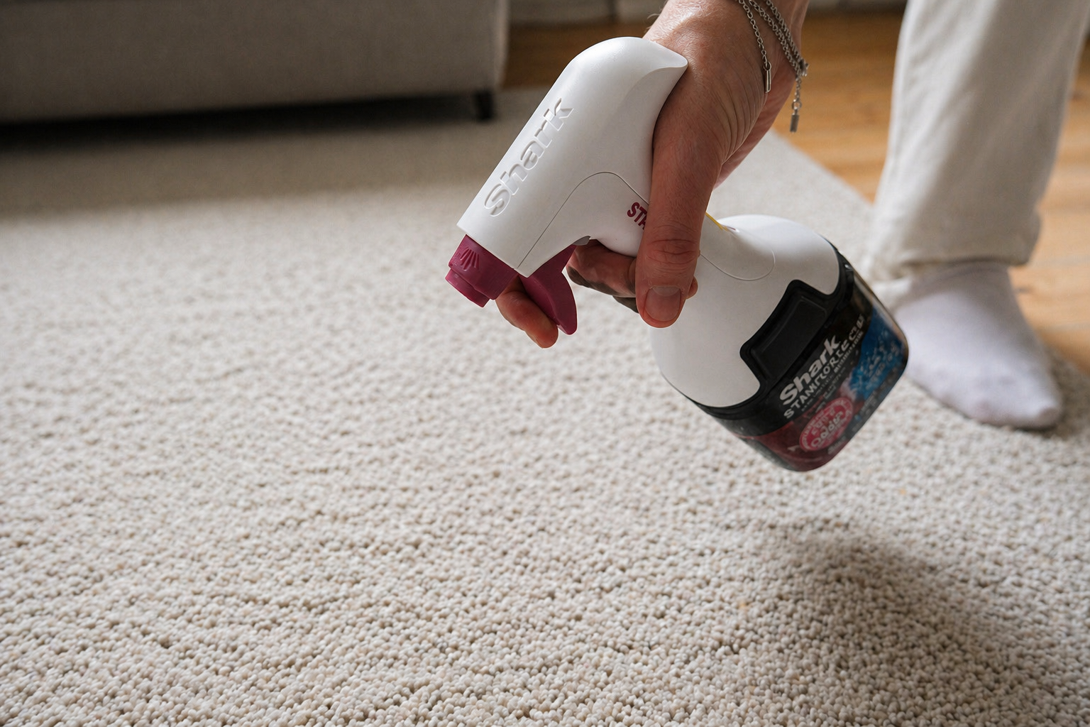 Under två veckors testning har vår tydligaste observation varit att Shark StainForce fungerar bäst när den får göra exakt det den är tänkt för: ta hand om mindre, färska och ofta blöta fläckar. Det kan handla om ett spill på en matta, smuts i bilsätet eller en liten olycka på en textil yta där man vill agera direkt. I de lägena känns produkten logisk. Man tar fram den, behandlar fläcken och är klar utan att först behöva rigga en större maskin.