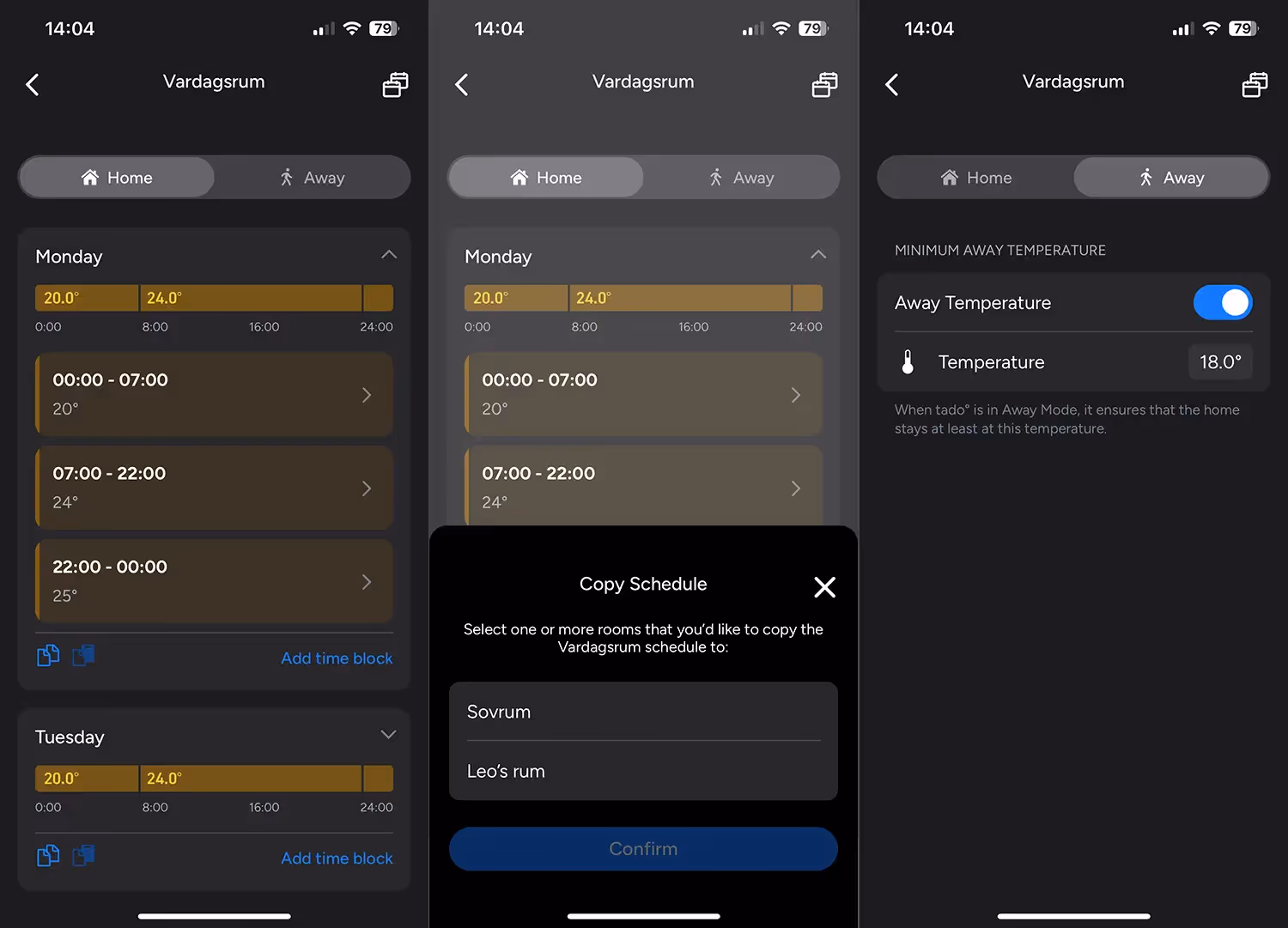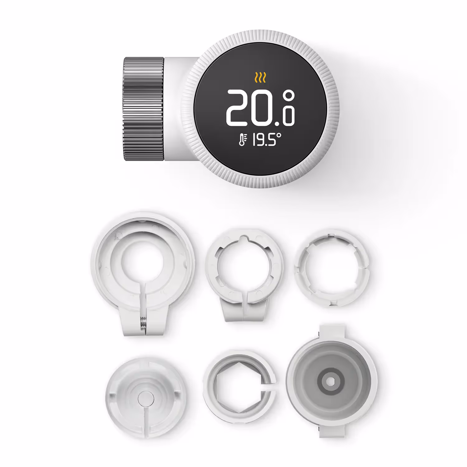 I varje paket till termostaterna ingår det alla adaptrar du kan tänkas behöva för att termostaten ska passa på just ditt element. Den refflade ringen runt displayen är den manuella kontrollen, vi har själva aldrig använt denna riktigt eftersom allt styrs via appen och scheman. Barnlåset är väldigt uppskattad då våra barn var framme direkt och började skruva. Det tog dock inte lång tid innan de lyckades klura ut hur barnlåset fungerade och lyckades ändra temperaturen ändå...