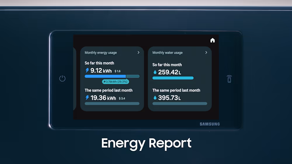 Skärmarna visar energiförbrukning i realtid och ger tips om optimal tvättid samt påminnelser om filterrengöring och annat underhåll. Detta kan bidra till en mer effektiv energianvändning och skötsel av vitvarorna.